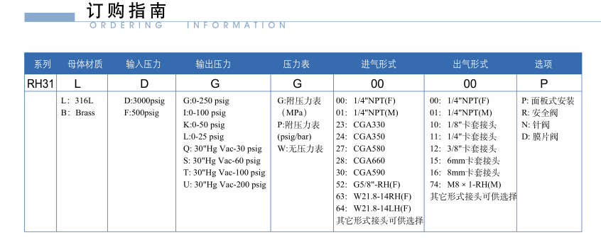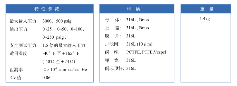 產(chǎn)品說明: P31不銹鋼雙極減壓閥,雙級(jí)式膜片減壓結(jié)構(gòu),輸出壓力穩(wěn)定,適用于高純氣體、標(biāo)準(zhǔn)氣體、腐蝕性氣體等。