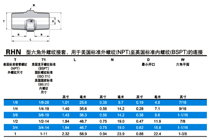 RHN型六角外螺紋接套